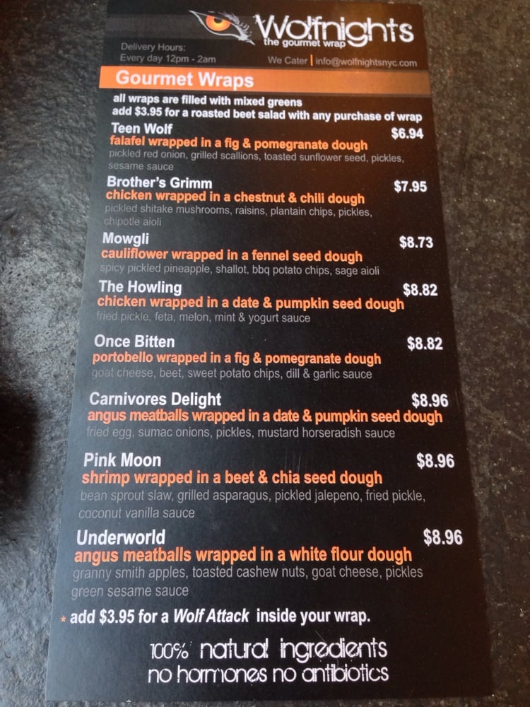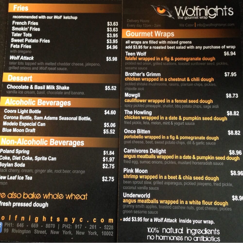 Welcome to Wolfnights - The Gourmet Wrap, a culinary gem nestled in the heart of New York City at 99 Rivington St. Specializing in gourmet wraps, this café elevates quick dining to new heights. Each wrap is crafted with a blend of fresh ingredients and bold flavors, promising a delightful experience for your taste buds.